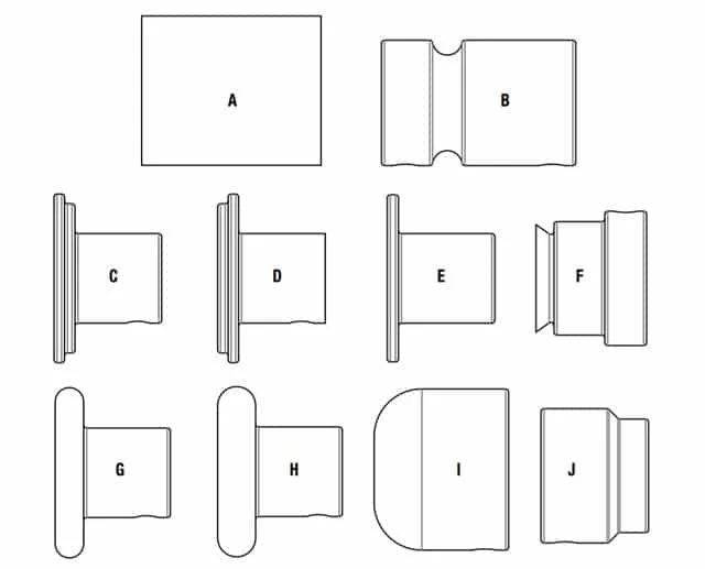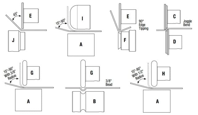 This kit includes an additional 10 dies to use with any bead roller with a 22mm shaft. With these additional dies on your bead roller you can create offset flanges, contours, deep channels, and style lines. This kit also includes a polyurethane lower “skate board” wheel, which can be used with a variety of upper dies. The dies includes in this kit are inside and outside offset dies, 3/8 and 1/2 inch tipping dies, round and knife edge tipping dies, 180 degree lower die, lower edge forming die and a lower forming die. All are made of CR12 steel with a Rockwell hardness of 35 HRC.