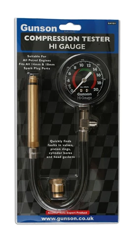 This Gunson tester has a flexible high pressure hose and fits all 14mm and 18mm spark plug holes.