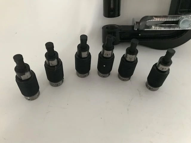 Drop forged heavy duty steel construction. Kit contains seven punch and die sets – 1/8″ , 3/16″ , 1/4″ , 5/16″ , 3/8″ , 7/16″ .