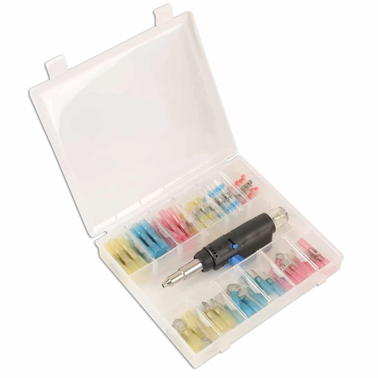 An essential solder kit complete with sleeves, wire splices, fork and ring terminals.